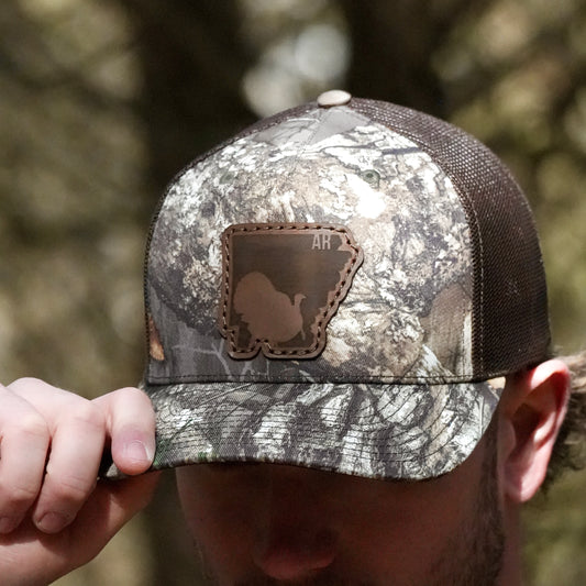 Arkansas Turkey Hunting Leather Patch Trucker Hat