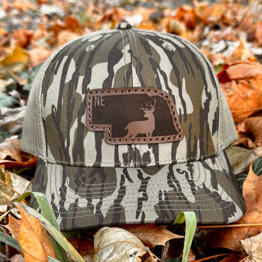 Nebraska Buck Hunting Leather Patch Trucker Hat