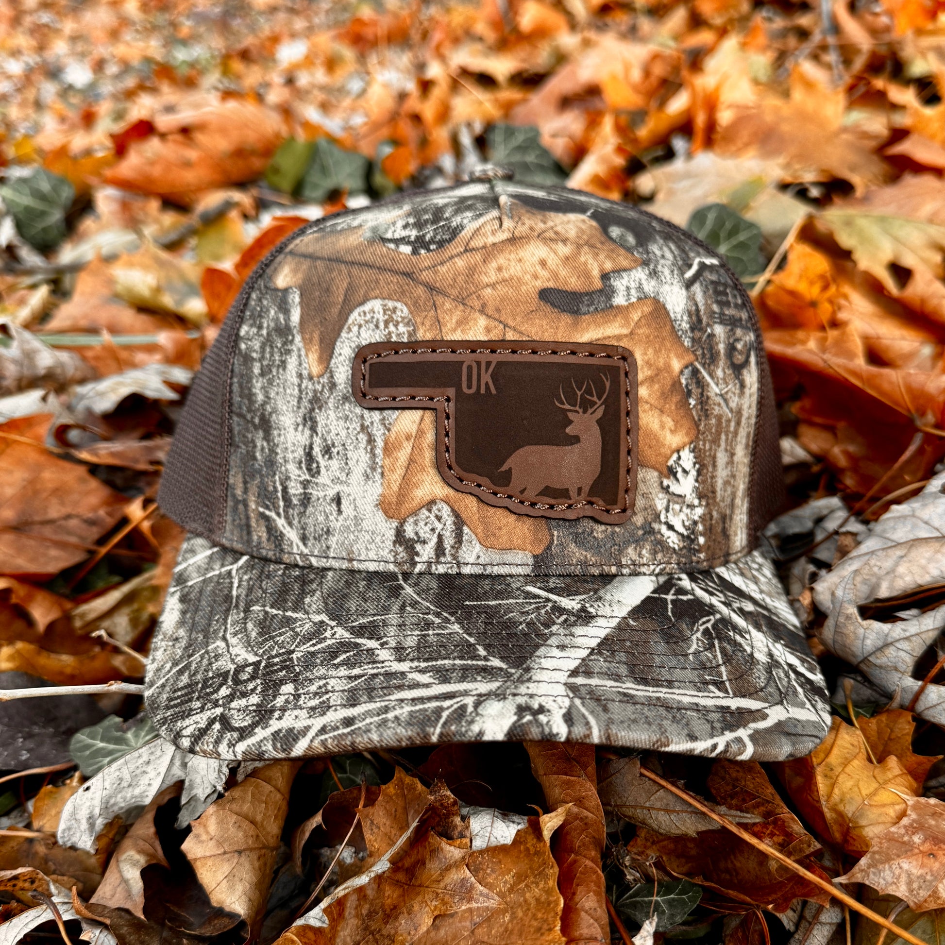 Oklahoma Buck Hunting Leather Patch Trucker Hat